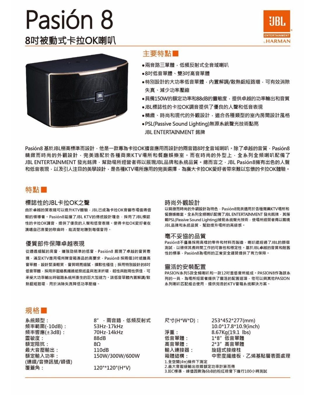 JBL Pasion 8 專業級 8吋卡拉OK喇叭