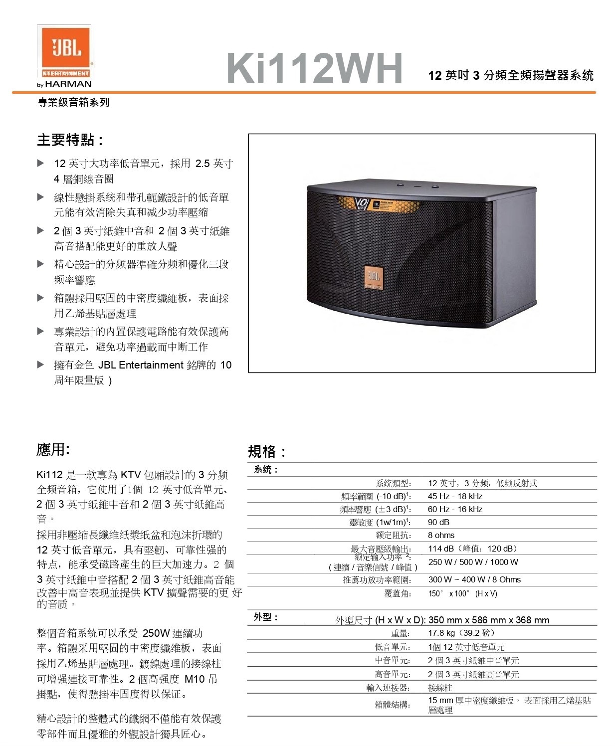 JBL KI112WH 懸吊式喇叭 卡拉OK喇叭